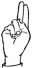 На ћирилици написано АЛЕКСАНДАР ДОРОНТИЋ састоји се из 18 слова [?]. Исписано ћириличном једноручном азбуком за глувонеме:
